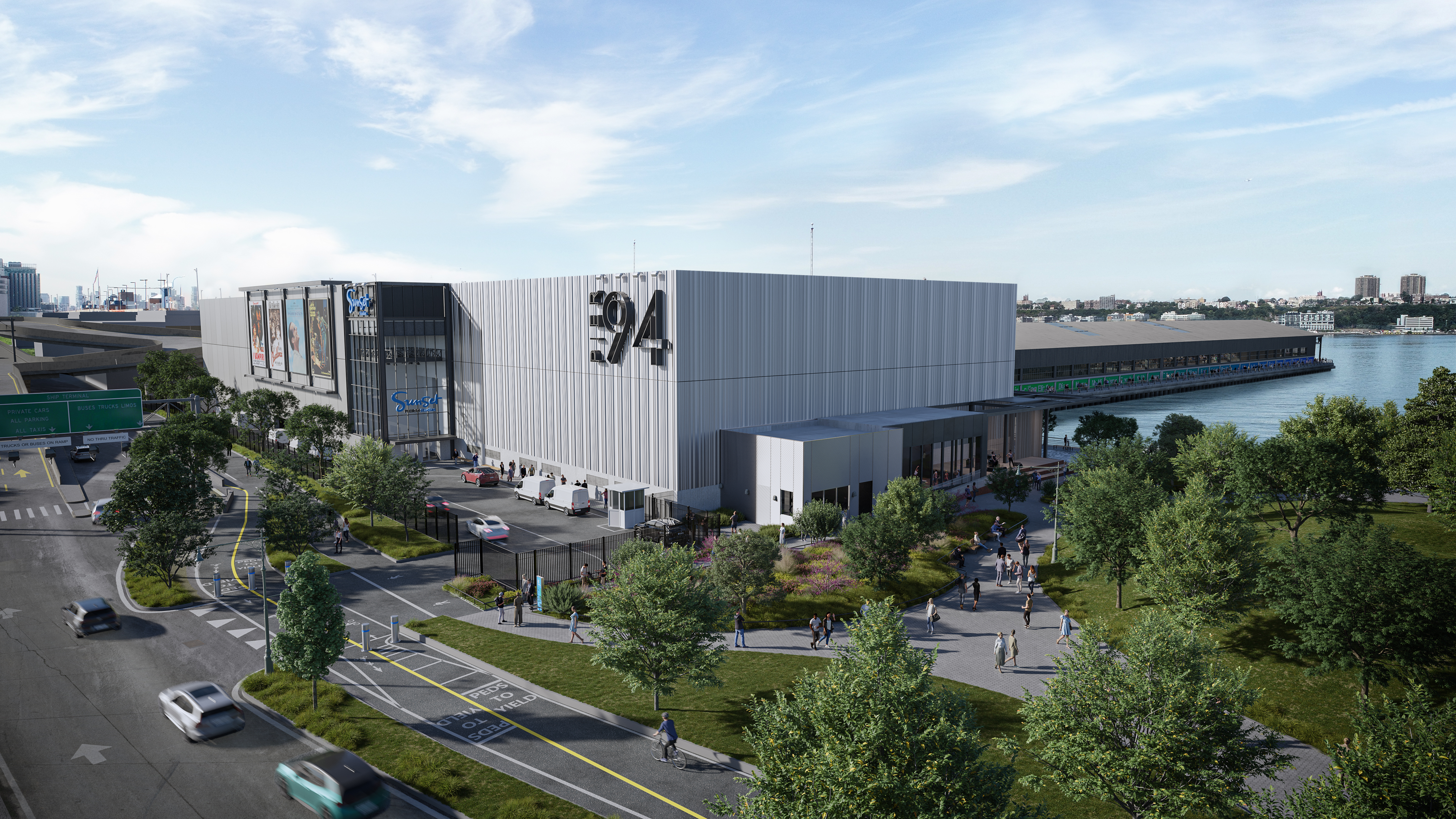 Sunset Pier 94 Studios will be a first-of-its-kind space, home to both state-of-the-art film and production technology that will make New York City even more competitive with other comparable markets, as well as impressive amenities for all New Yorkers including new public restrooms for Hudson River Park, an 1,850-square-foot community amenity space, 25,000 square feet of waterfront open space and pier access, and safety improvements to the bikeway. There will also be a program to support workforce development and training programs to connect local residents to opportunities in film, television, commercial and other media production.